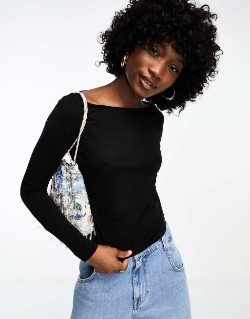 Product Name: Camiseta negra cuello barco clearance