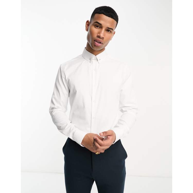 Product Name: Mens white dress shirt with collar bar clearance