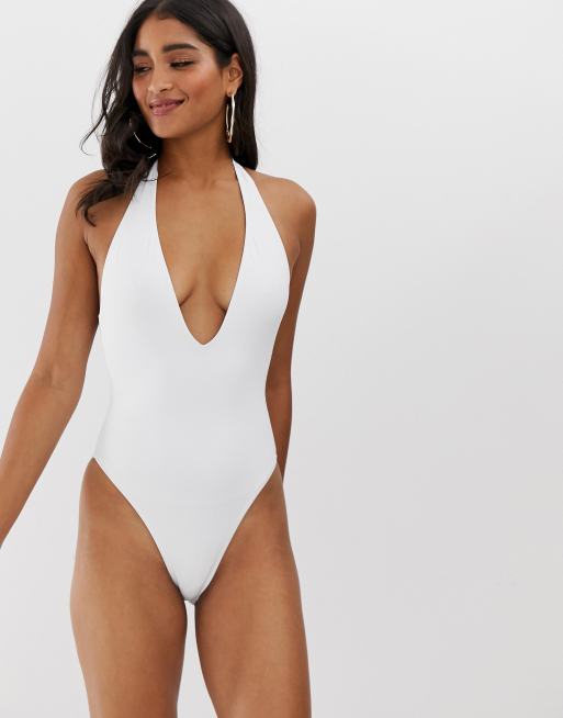 Product Name: Plunge white swimsuit clearance
